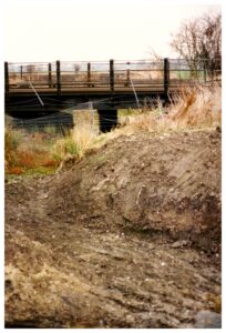 I came across some old photos in a cupboard (genuine colour images dating from 1988) of the structures in place after the Wraysbury railway bridge collapse. The bridge failed because contractors took insufficient care of the local land drainage infrastructure.