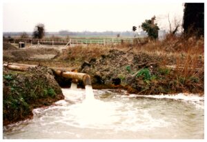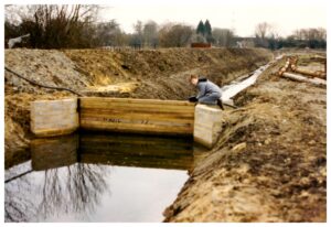 The image below shows the first stop-log construction after the collapse that was used ultimately to control the ordinary watercourse level.